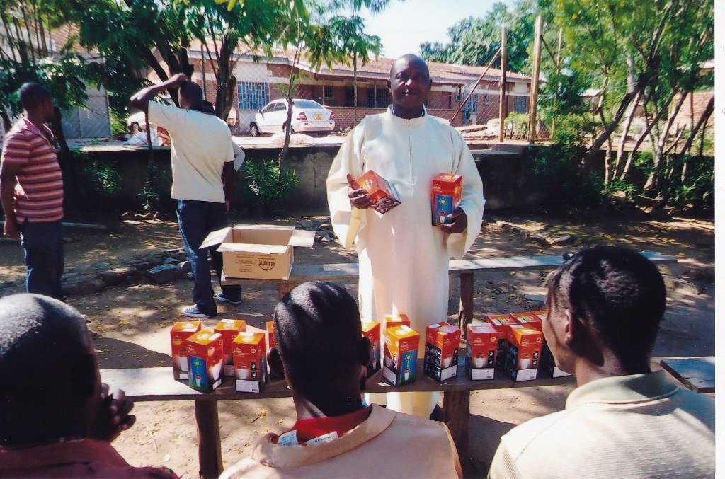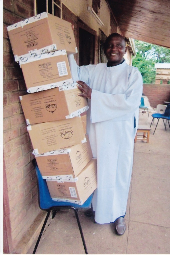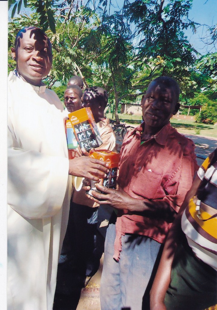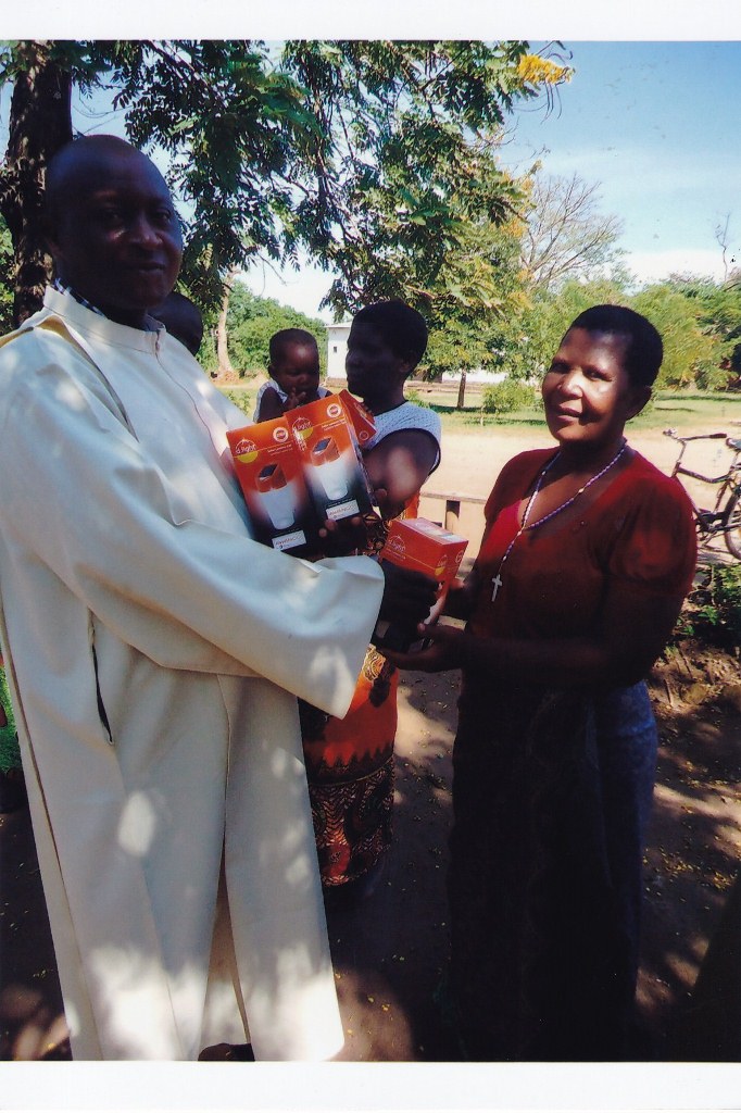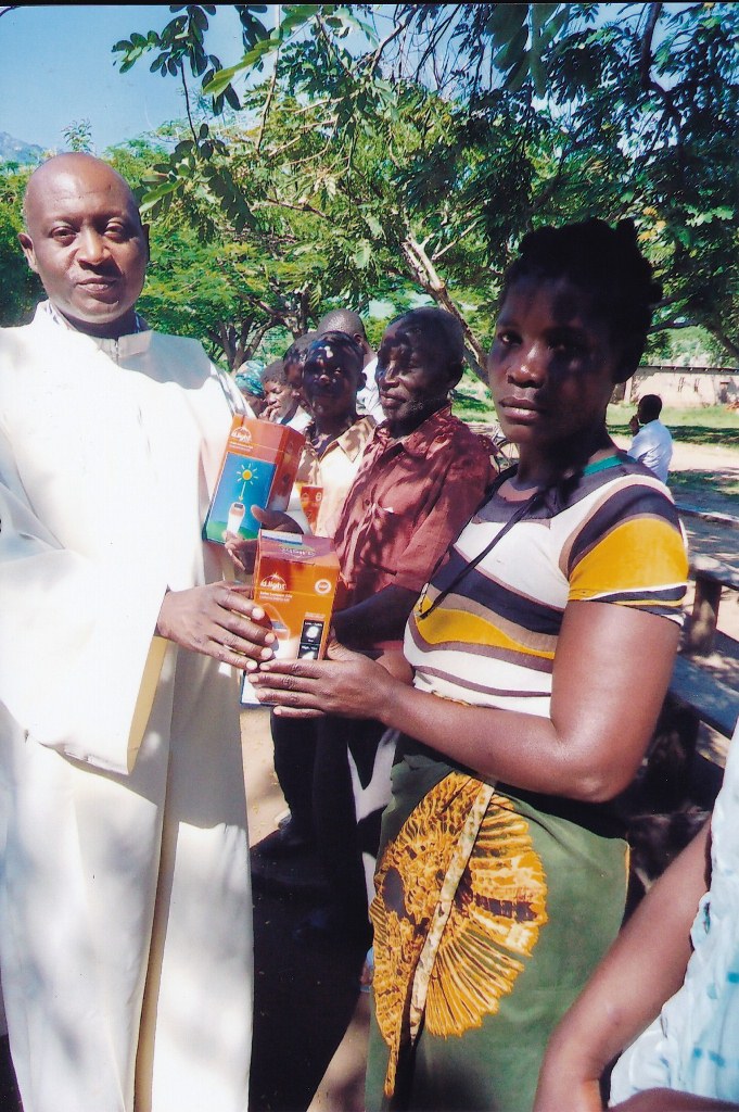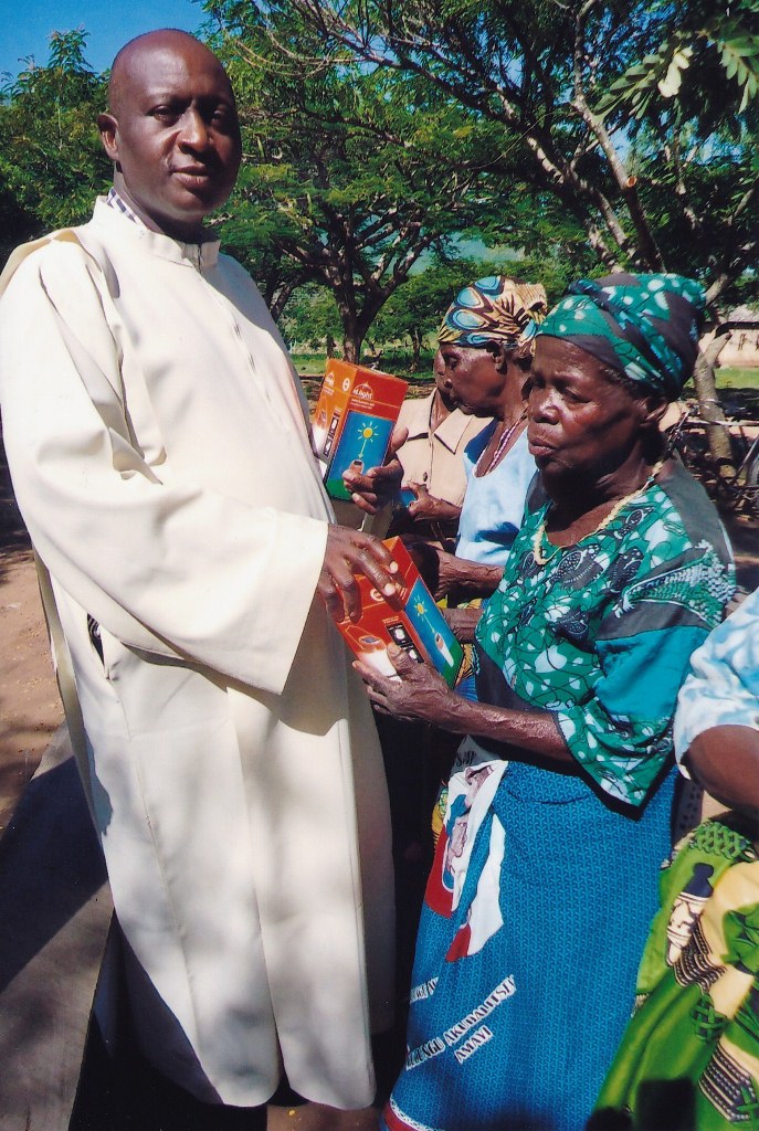 I am sending to you some pictures following the funds you sent for the solar lights to be given to some of our needy parishioners. I did buy them and gave them to all the 84 of our small Christian communities. They also assisted us at some masses during Christmas time. The parishioners who were given one each will be assisted in their homes especially at night to give them light. We are all very very grateful to you all for the support you are giving our people at Chiringa Parish. They all asked me to extend their profound and sincerest thanks to you all because you are alleviating them from their poverty and through your commendable, great and love they are able to see the love of God on them. They all promise to continue praying for you all and ask you all to continue assisting them. They are very appreciative and never take for granted all your great and wonderful services to them Please thank all the good people there on behalf of our people here